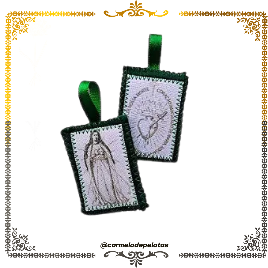 Escapulários com pequenos defeitos de costura ou de estampa.