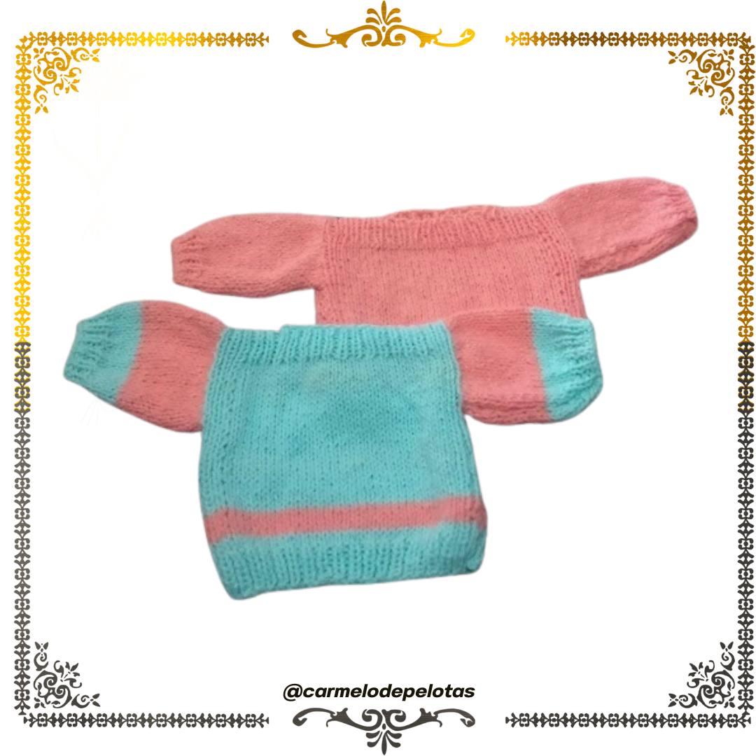 Encanto e aconchego feitos à mão! Este conjunto exclusivo traz dois suéters de crochê, delicadamente confeccionados com fios macios e confortáveis, ideais para a pele sensível do bebê.