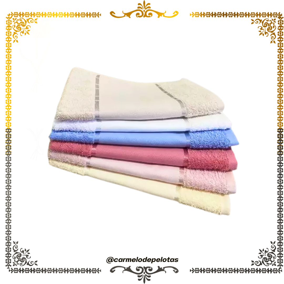 Toalhas de lavabo tipo felpuda, bordadas pelas Irmãs Carmelitas.